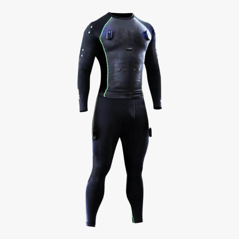 A SMARTSKIN são umas calças e camisola de compressão com tecido tecnológico de elétrodos de carbono secos oferecendo uma estimulação muscular potente e compatível com a utilização do sensor de ritmo cardíaco.