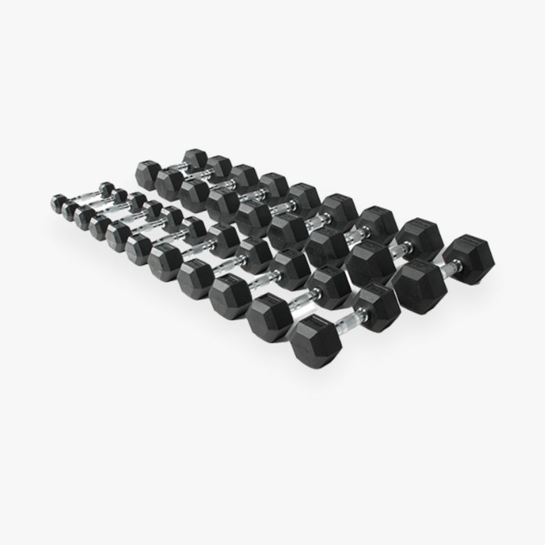 O Kit de halteres hexagonais O'Live é um conjunto de musculação composto por 10 pares de halteres hexagonais de 1 kg a 10 kg para qualquer rotina de treino, tonificação, ganho de força, bíceps, tríceps, etc.